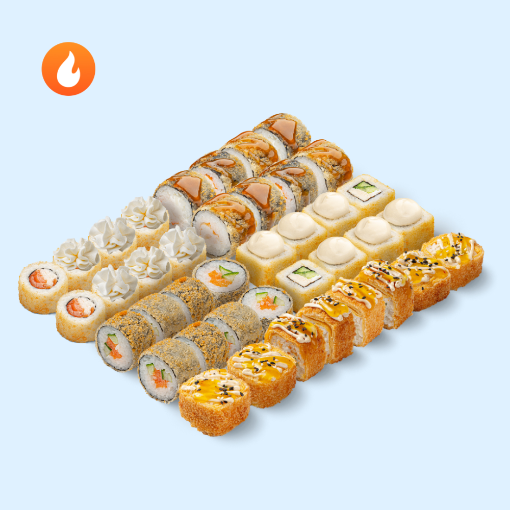 Он останется только между вами. Раздели со второй половинкой роллы темпура с лососем и морепродуктами в начинке. Состав: Филадельфия темпура, Сяке темпура, Цезарь темпура, Тортилья с курицей чили-ананас, Эби темпура с соусом лемонграсс
